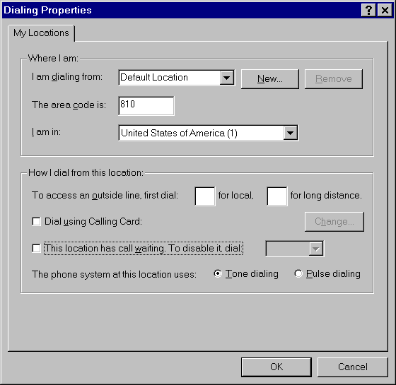 on using these properties. Click on Dialing Properties to setup: