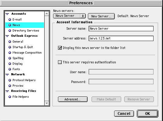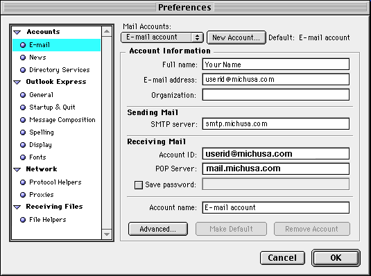NOTE: If you are using the Internet Setup Assistant for configuring your internet access, Outlook Express should already be configured for you.