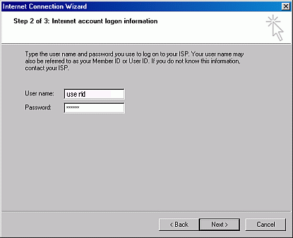 Step 5) Type in your michusa.com username in the User name: field. Type in your password in the Password box. Please be careful when you type in your Username and Password because they are case sensitive. In other words if you type in USERNAME (all capitals) instead of username (all smalls) michusa.com will not recognize you. The same thing applies for the password. Type in your Username and Password exactly as you chose them when you joined. The password you type in shows up as a series of stars to keep it private. Click the Next button to continue.