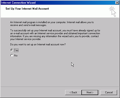 Step 7) Select the Yes option to setup your internet mail account and click the Next button to continue.