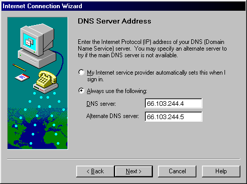 Step 10) Select Always use the following: and specify both of the DNS servers (listed in the figure below). Click the Next button.