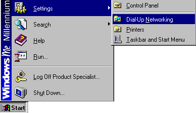1. From the Start menu, click Settings, and choose Dial-Up Networking.