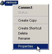 6. Click the michusa icon with your right mouse button, then choose Properties.