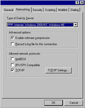 7. Click on the Networking tab. Click the down arrow on the Type of Dial-Up Server: