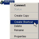 Networking window open. Click the michusa icon with your right mouse button, and then choose Create